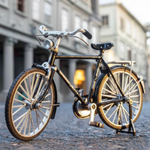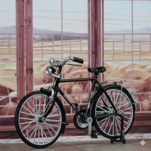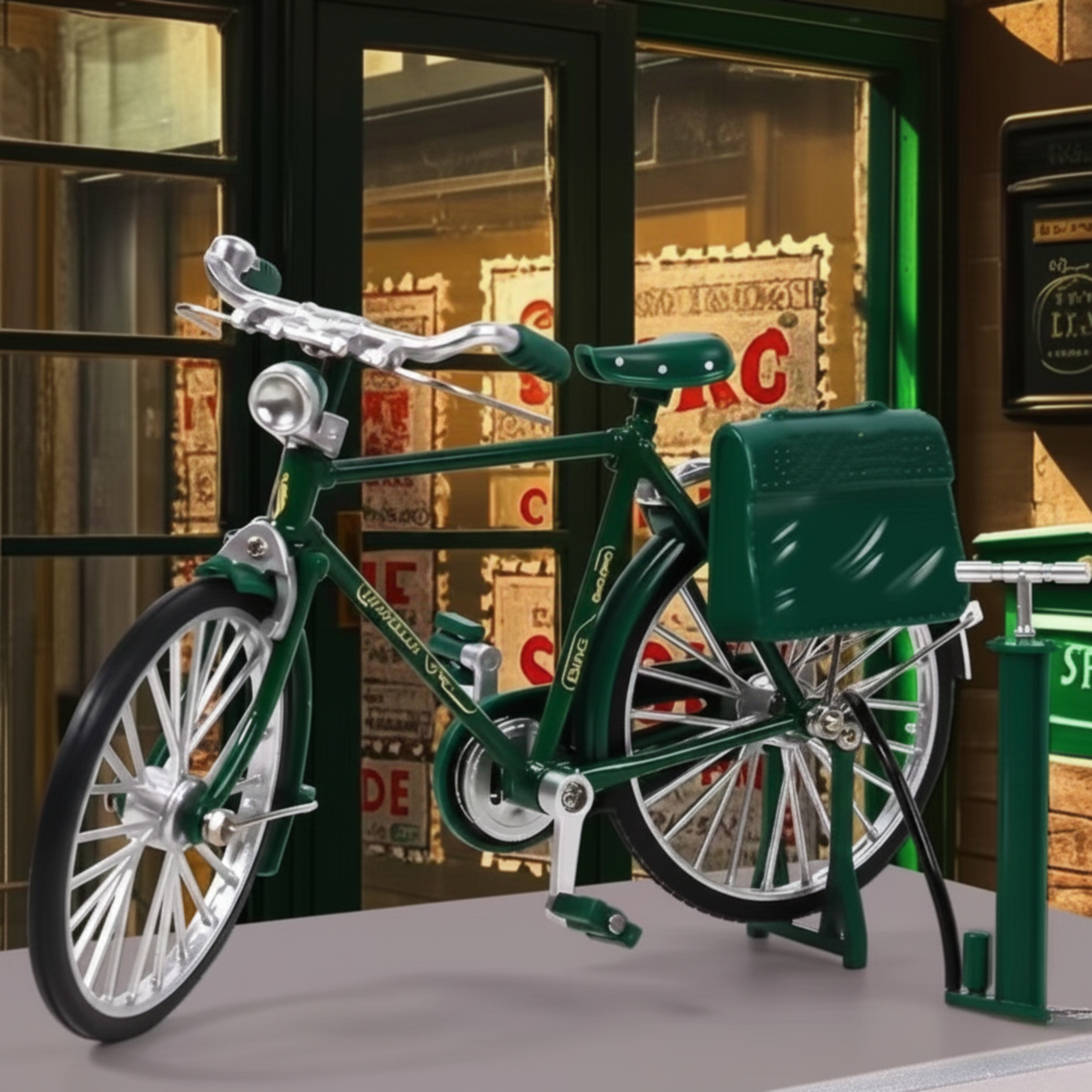 A realistic 1:10 scale DIY assembly model of the classic vintage ’28’ bicycle. Made with a durable alloy body and rubber tires, it features functioning rotating pedals, steerable handlebars, and a working kickstand. Includes a retro briefcase and pump accessories. Perfect for home decor or collectors.