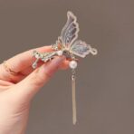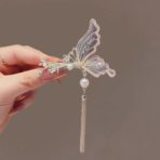 - Elegant & dreamy Aesthetic: Crafted with a silver-tone alloy branch design and adorned with lustrous pearls. The translucent wings feature glittery details that catch the light, while the long dangling tassel (fringe) adds a sophisticated, elongating effect to your hairstyle.
