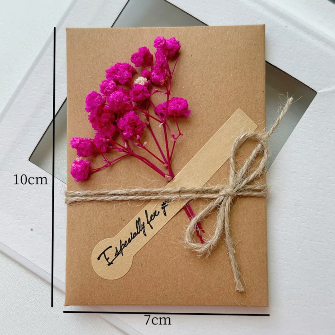 - Package Includes: Envelope card, dried flower bouquet, twine tie, and sticker.
